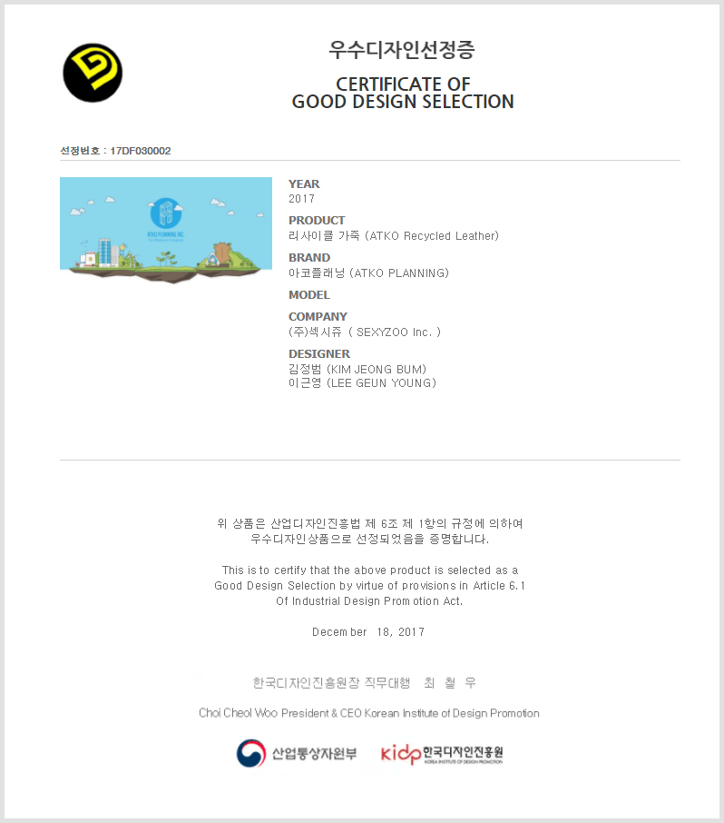 ATKO planning은 지속가능한 가죽 소재 개발을 위하여 천연 재생 가죽부터, 전 세계 최초의 가죽 실 등 다양한 소재를 개발하고 있는 친환경 소재 기업입니다. ATKO planning의 친환경 소재 기업이라는 아이덴티티 확립을 위한 리브랜딩 작업을 Sexyzoo와 함께 진행하게 되었습니다. Sexyzoo에서는 ATKO planning의 기업 철학을 바탕으로 홍보영상, 시각 홍보물 및 홈페이지를 제작하였습니다.