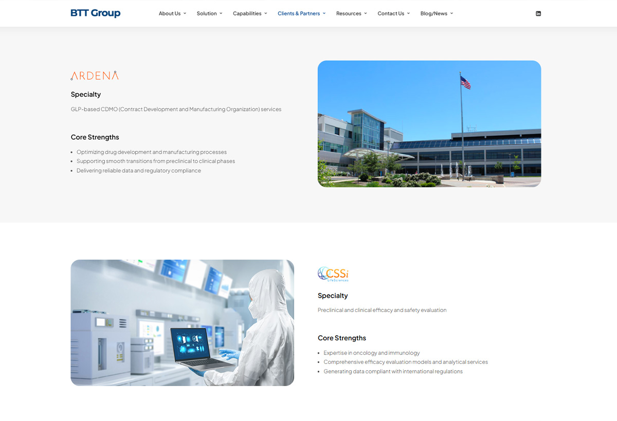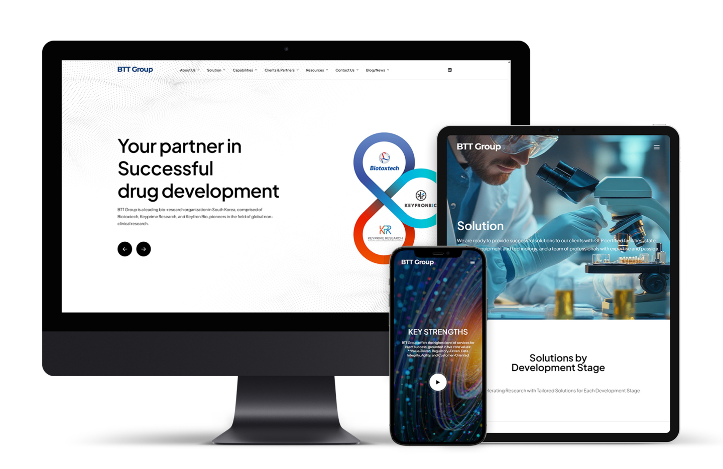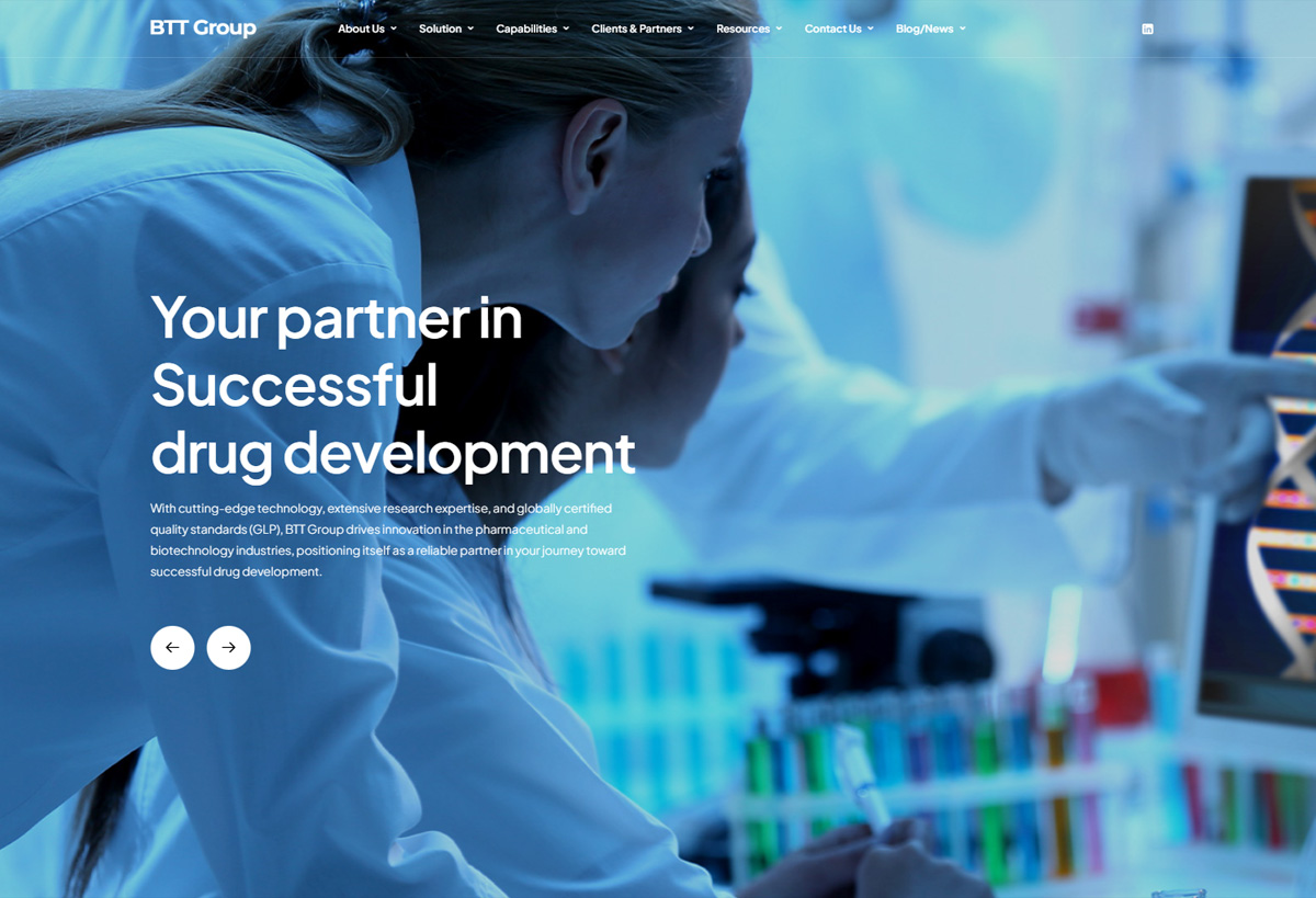 BTT 그룹의 바이오 연구 및 의약품 개발 분야에서 선도적인 기업의 아이덴티티를 명확히 전달하고, 고객에게 보다 효과적으로 정보와 솔루션을 제공할 수 있도록 반응형 웹사이트를 개발하였습니다. BTT 그룹의 전문성과 신뢰성을 반영하는 디자인을 통해, 웹사이트 사용자 경험(UX)을 최적화하였습니다.
