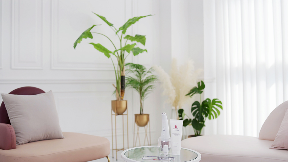 화이트톤의 스튜디오에 핑크계열의 가구 배치, 핑크톤의 색보정, DUOLIF의 로고와 컬러시스템을 활용한 2D 그래픽 등 제품의 색상을 영상의 전반적인 요소에 사용하여 DUOLIF의 브랜드 아이덴티티를 나타내며 영상의 통일감을 주었습니다.