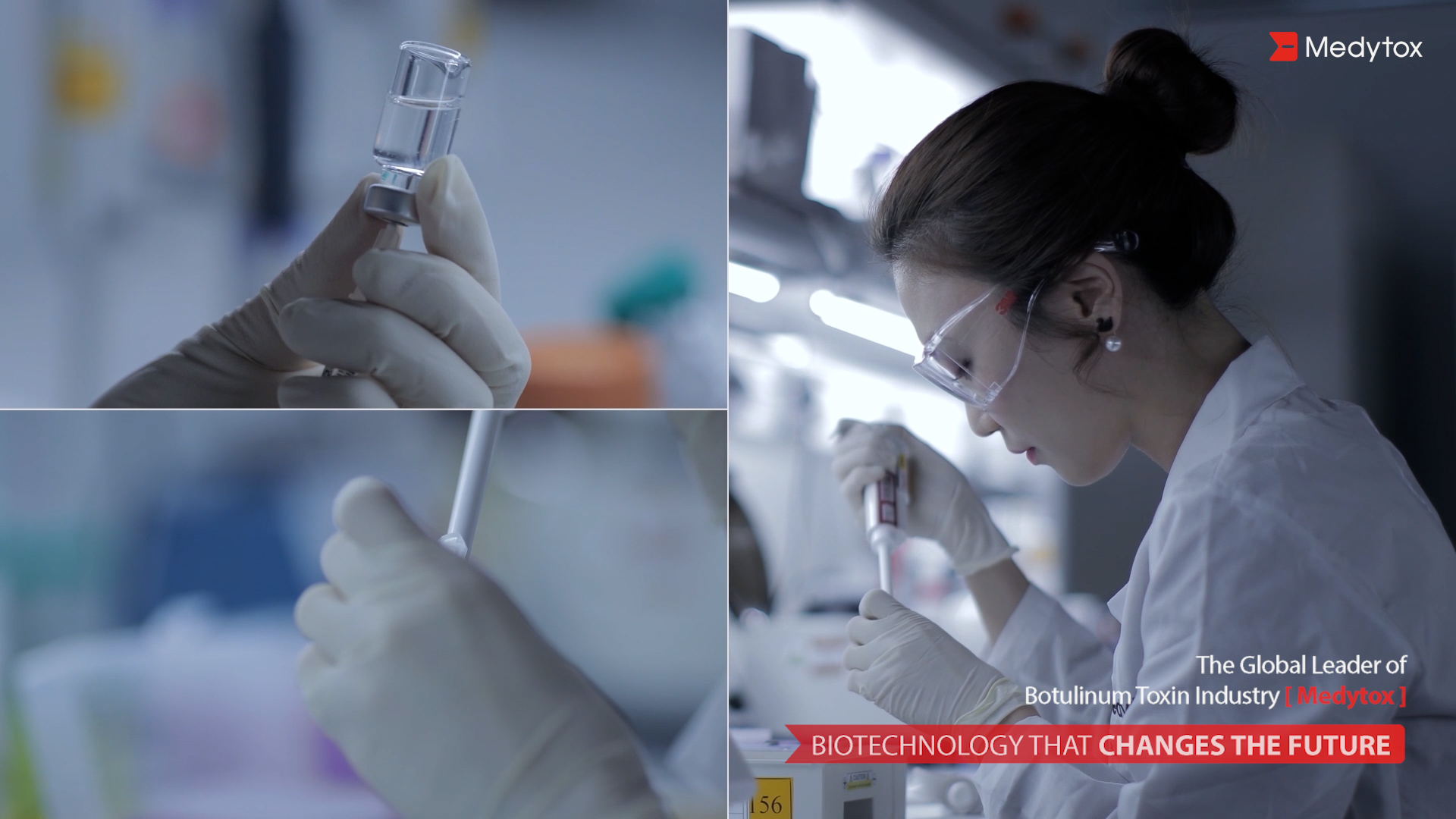 보툴리눔 톡신 의약품을 주력 아이템으로 연구 역량을 집중하고 있는 메디톡스입니다. 기업의 외부,내부 시설 및 연구하는 모습을 담은 촬영본을 영상의 초반부에 사용하여 기업의 전문성을 보여주었습니다.