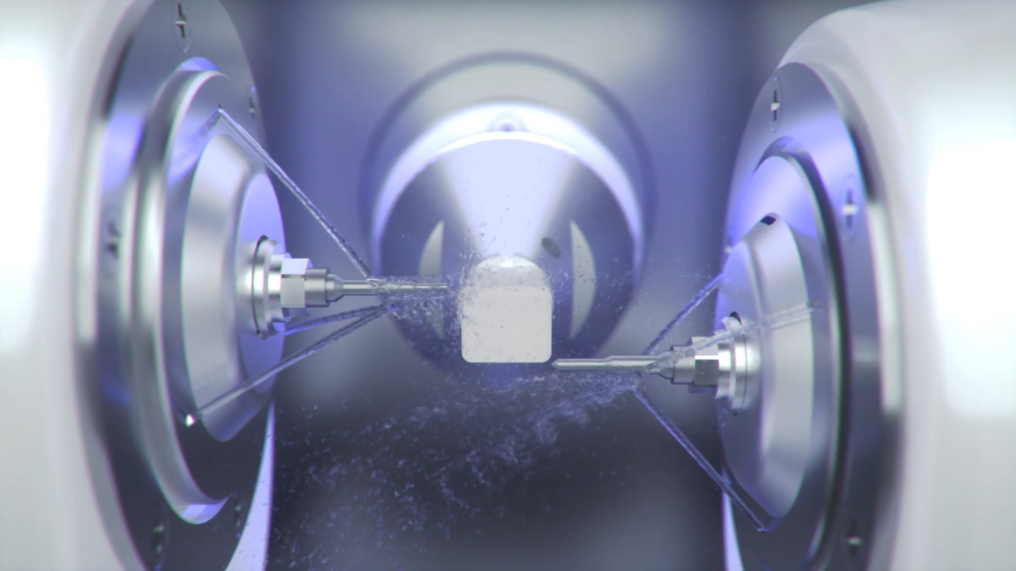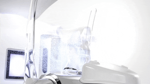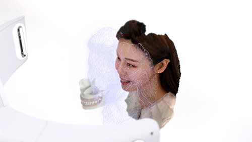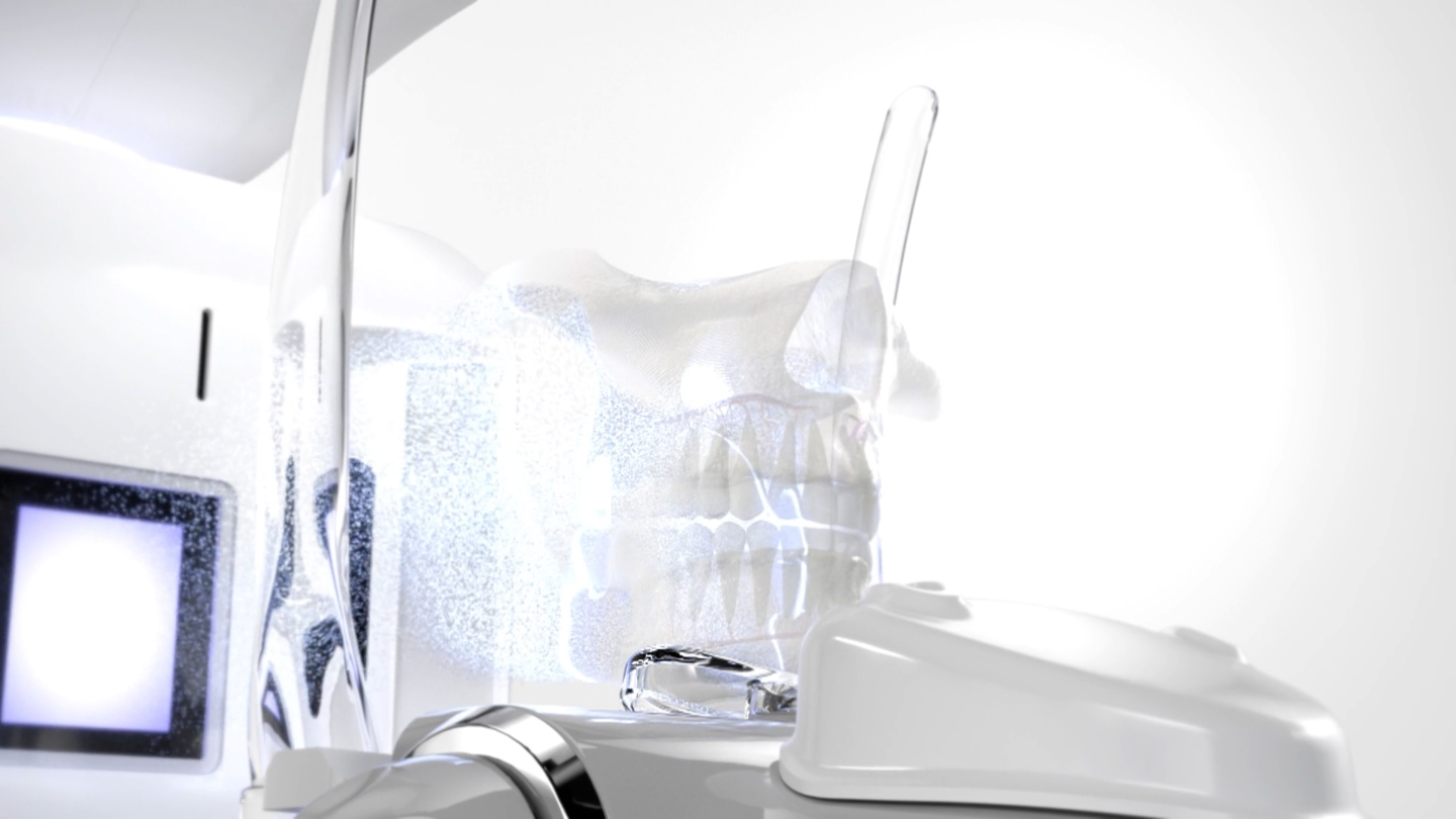 RAYSCAN의 첨단 기술력으로 3차원 디지털 촬영하는 모습을 표현하고자, 입자 효과를 통해 스캔하는 연출로 미래적인 장면으로 표현했습니다.