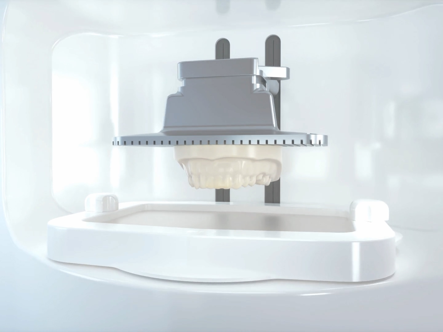 RAYDENT STUDIO, RAYDENT MILL의 제품 내부에서 진행되는 치아모형 제작과정을 상세히 표현하였습니다. 그리고 실제같은 액체 표현을 통해 더욱 현실감을 높였습니다.