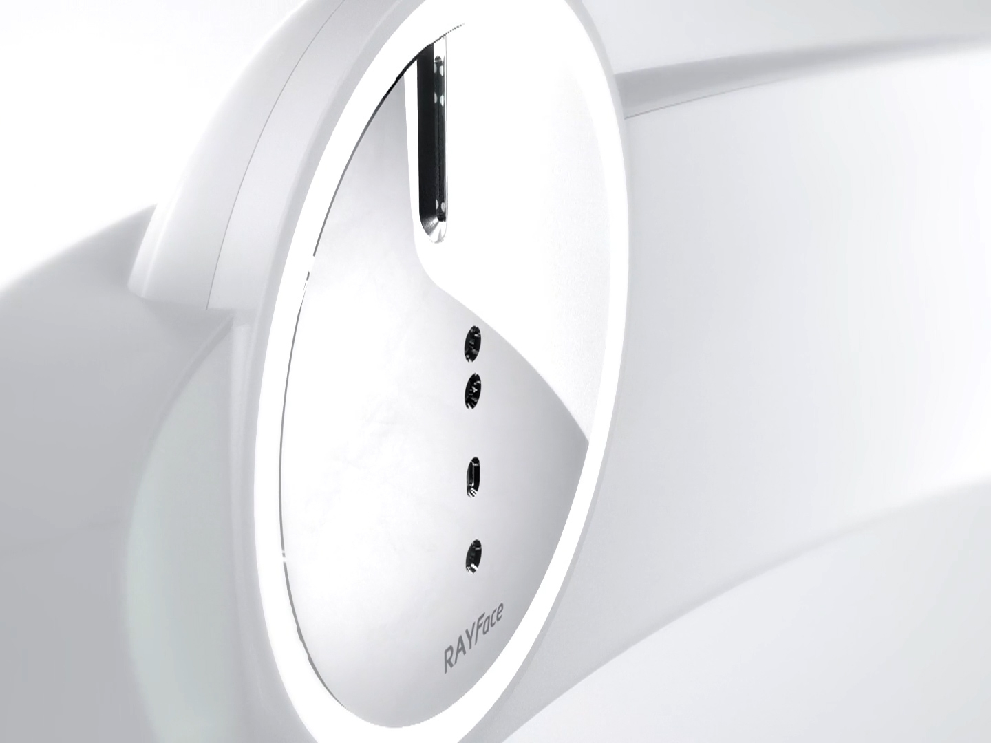 어두운 배경속에서 고조되는 분위기를 통해 등장씬을 연출하여 RAYSCAN 제품의 부드러운 곡선면의 디자인 형태를 부각시켰습니다.