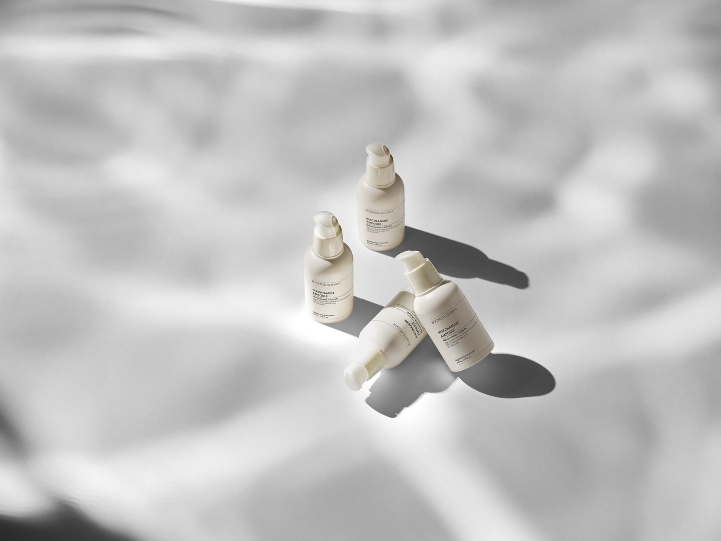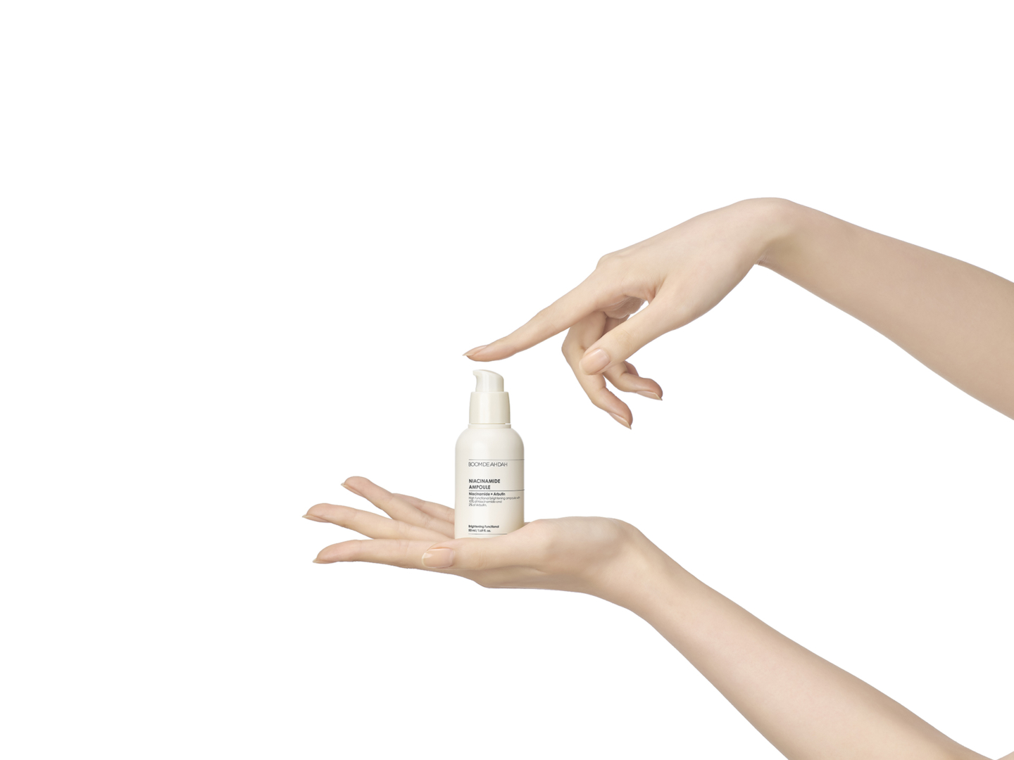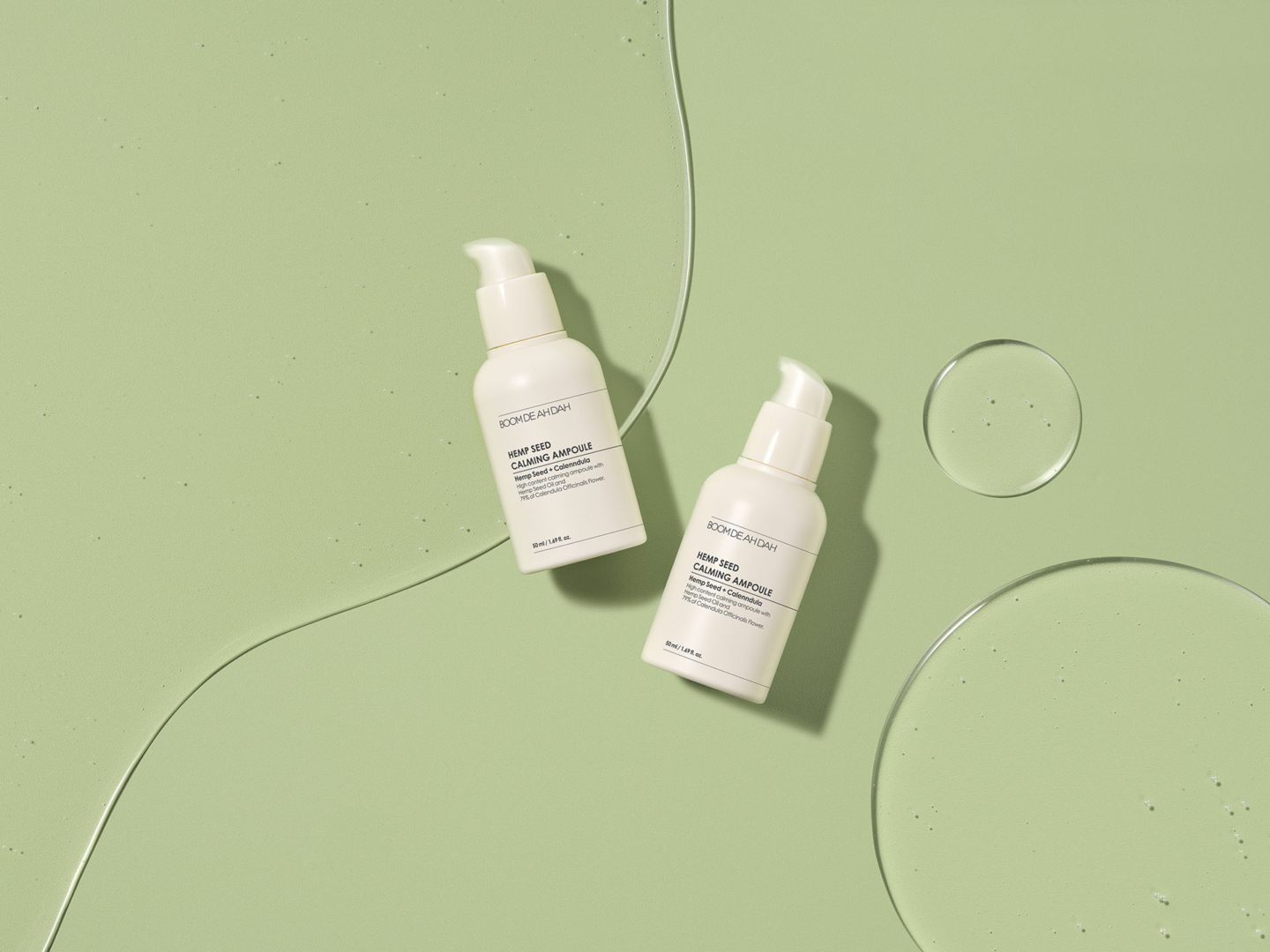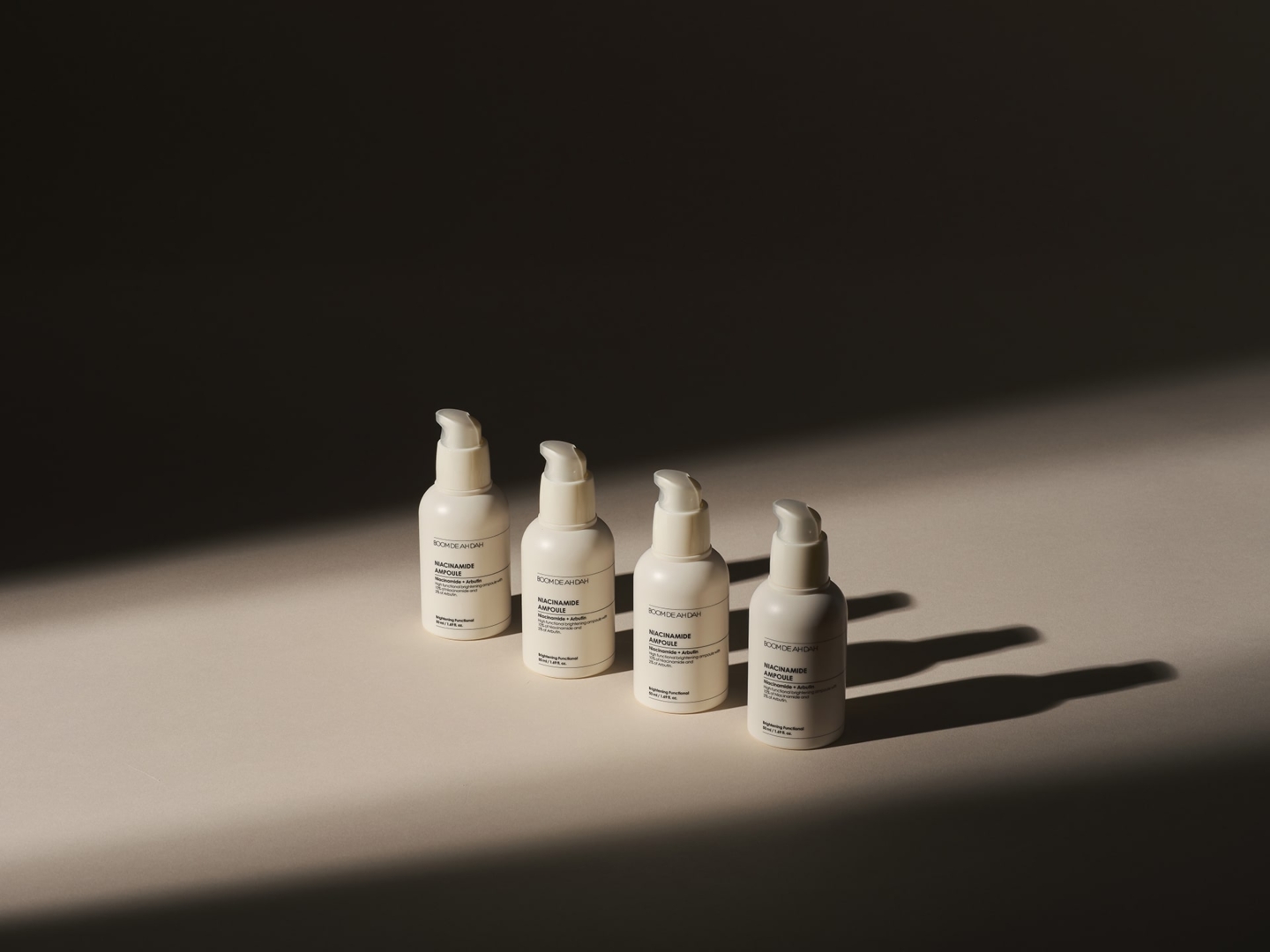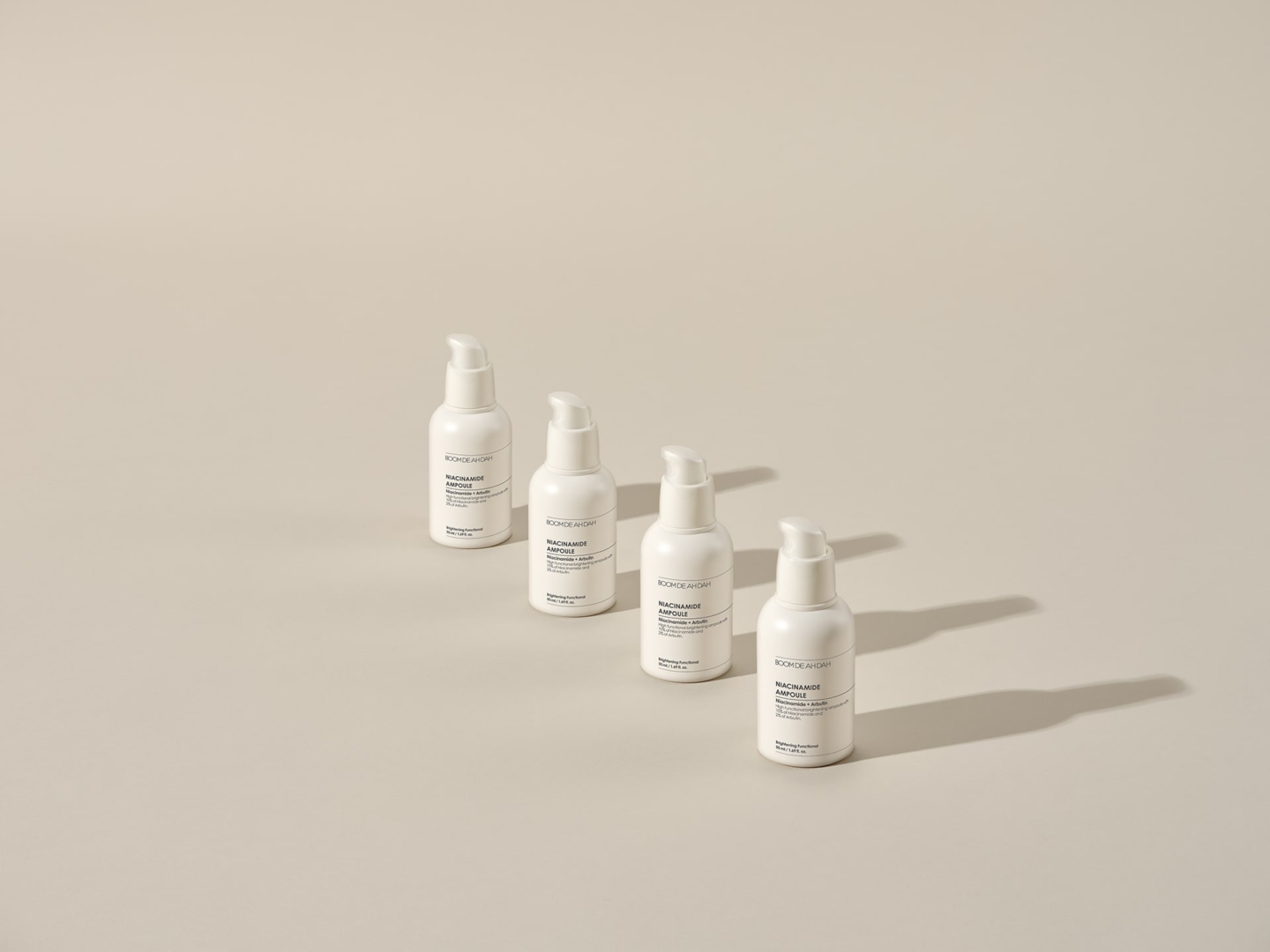 4종의 앰플을 토출한 후 롤링하는 장면, 흡수 시킨 상태에서의 손등 장면 그리고 가까이에서 제형을 보여주는 장면을 촬영하여 제품의 점도나 택스처감을 자세하게 보여주었습니다.