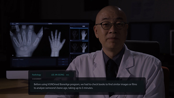 실제 소프트웨어 녹화본을 기반으로 하여 인터페이스를 소개하며 솔루션에 대한 신뢰를 더해줍니다. 녹화본과 함께 2D 그래픽을 활용하여 골 연령 측정방식, 소프트웨어 구동방식 등 솔루션의 구체적인 특장점을 부연하여 설명합니다.