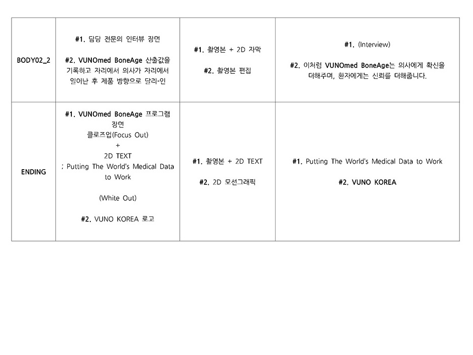 촬영 전 장소, 소품, 출연자 등 현장에서 운영되는 다양한 항목들의 자료를 구축하며 세부일정, 안전상황 및 인원점검을 위한 콜시트를 준비하여 최고의 퀄리티와 자연스러운 연출을 이끌어냅니다. 담당 전문의의 실제 소견을 바탕으로 내용을 구성하여 의사에게 확신을 더해주며 환자에게는 신뢰를 더해주었습니다.