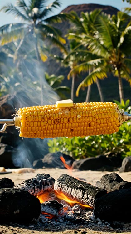 04. 알로하 섬에서 옥수수 바베큐를 하는 모습